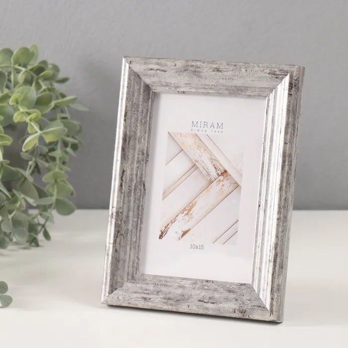 Фоторамка пластик МИРАМ 10х15 см, 642623-4 серебро (пластиковый экран)