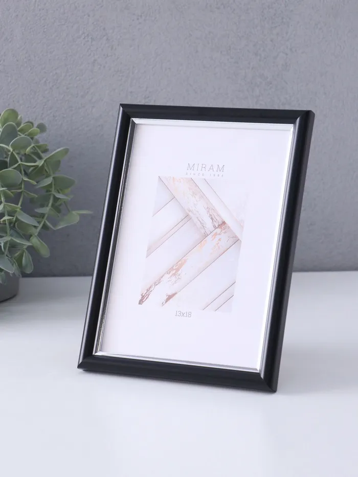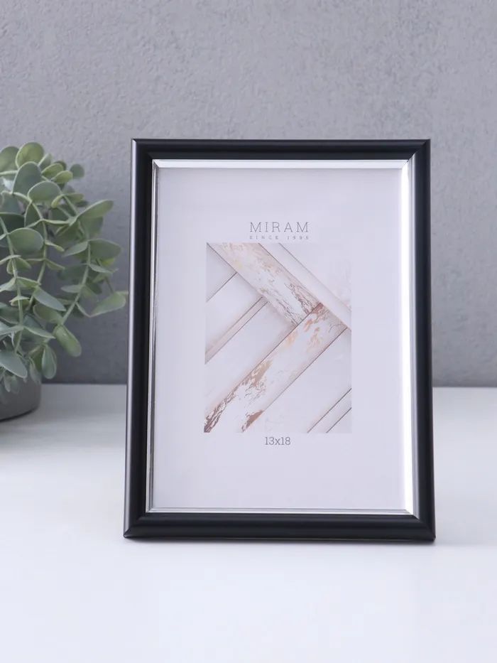 Фоторамка пластик "МИРАМ" 13х18 см, 636477-5, чёрный с серебром (пластиковый экран) — Характеристики