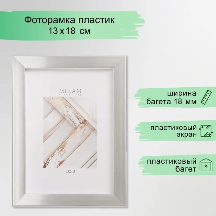 Фоторамка пластик "МИРАМ" 13х18 см серебро (пластиковый экран) — Характеристики