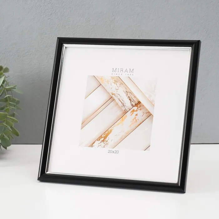 Фоторамка пластик "МИРАМ" 20х20 см, 636477-22, чёрный с серебром (пластиковый экран) — Характеристики