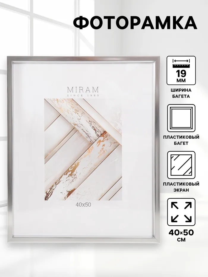 Фоторамка пластик "МИРАМ" 40х50 см, 021 серебро (пластиковый экран) — Характеристики