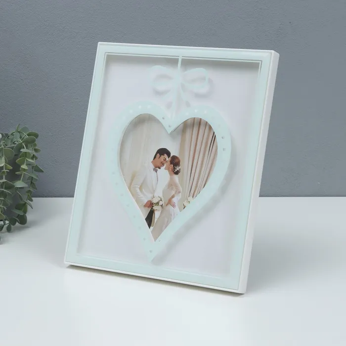 Фоторамка пластик на 1 фото 20х25 см "Сердце с бантиком" серебро бумага тиснение 26х2х31 см 107050 — Характеристики