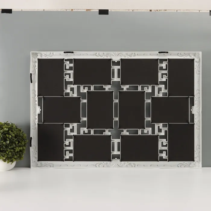 Фоторамка пластик на 12 фото 10х15 см "Лабиринт" белая с золотым узором 56,5х75,5 см — Характеристики