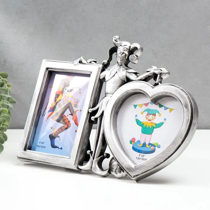 Фоторамка пластик на 2 фото 10х15, 13х13 см "Скоморох" тёмное серебро 22,5х31х2 см — Характеристики