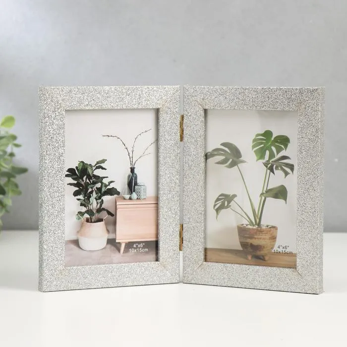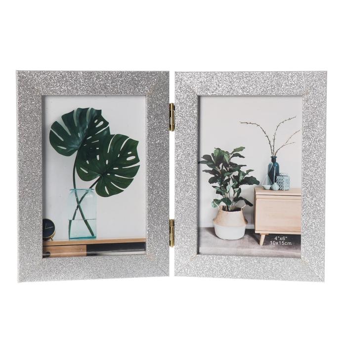 Фоторамка пластик на 2 фото 10х15 см "Блёстки" серебро 18х26,5 см — Характеристики