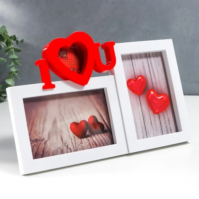 Фоторамка пластик на 2 фото 10х15 см "Я люблю тебя" белая 20х30,5 см — Характеристики