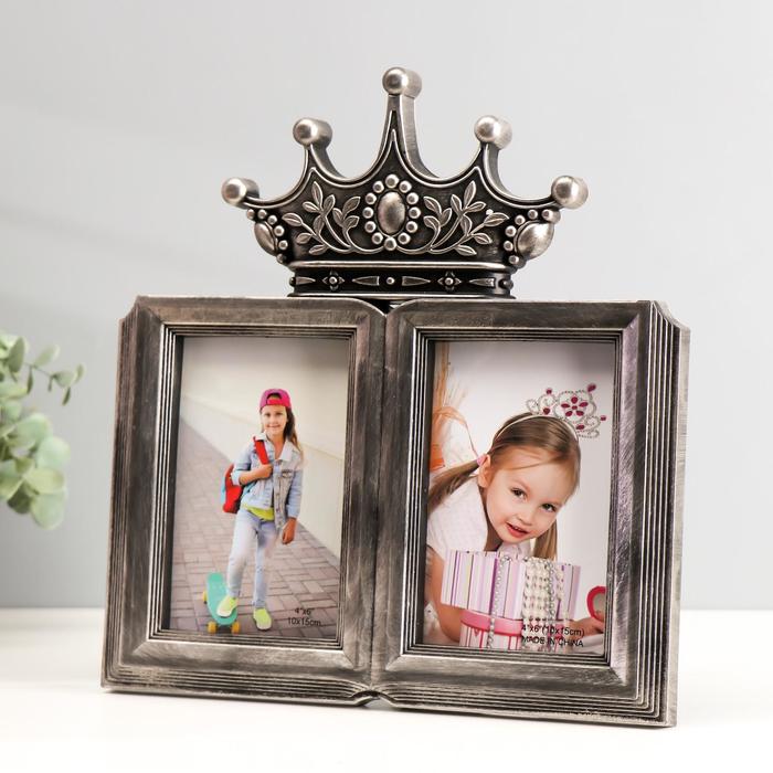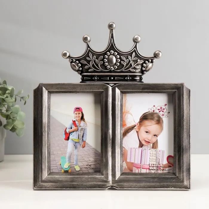 Фоторамка пластик на 2 фото 10х15 см "Корона" тёмное серебро 30х28 см — Характеристики