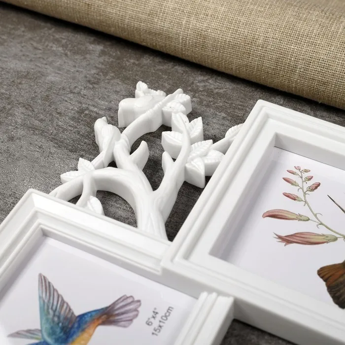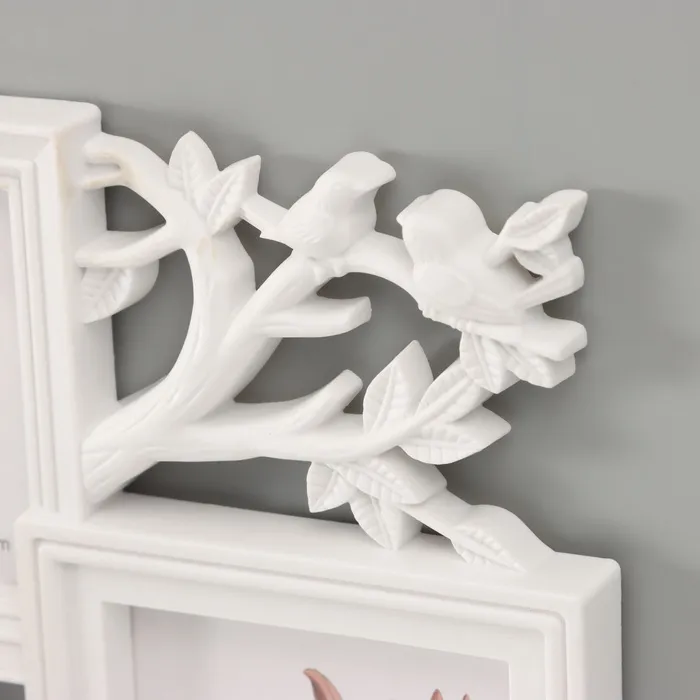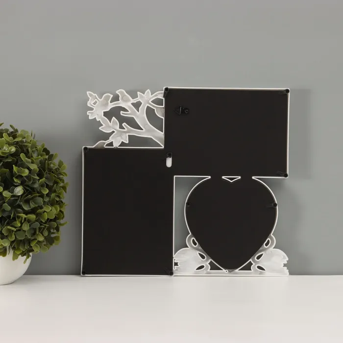 Фоторамка пластик на 3 фото 10х10, 10х15 см "Фламинго и птички" белая 25,5х28 см — Характеристики