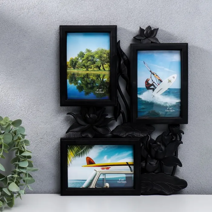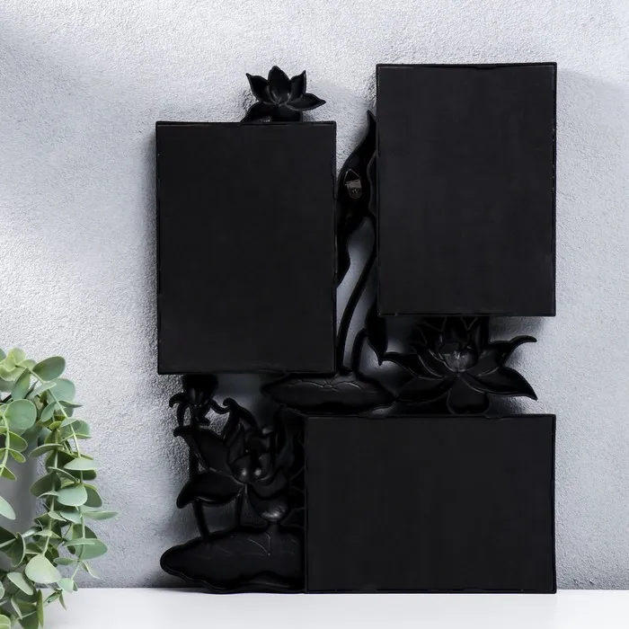 Фоторамка пластик на 3 фото 10х15 см "Лотосы" чёрный 36х27 см — Характеристики