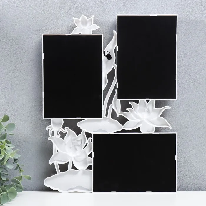 Фоторамка пластик на 3 фото 10х15 см "Лотосы" золотисто-белый 36х27 см — Характеристики