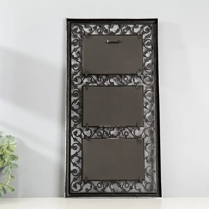 Фоторамка пластик на 3 фото 10х15 см "Мелкий вьюнок" тёмное серебро 23,5х45,5 см — Характеристики