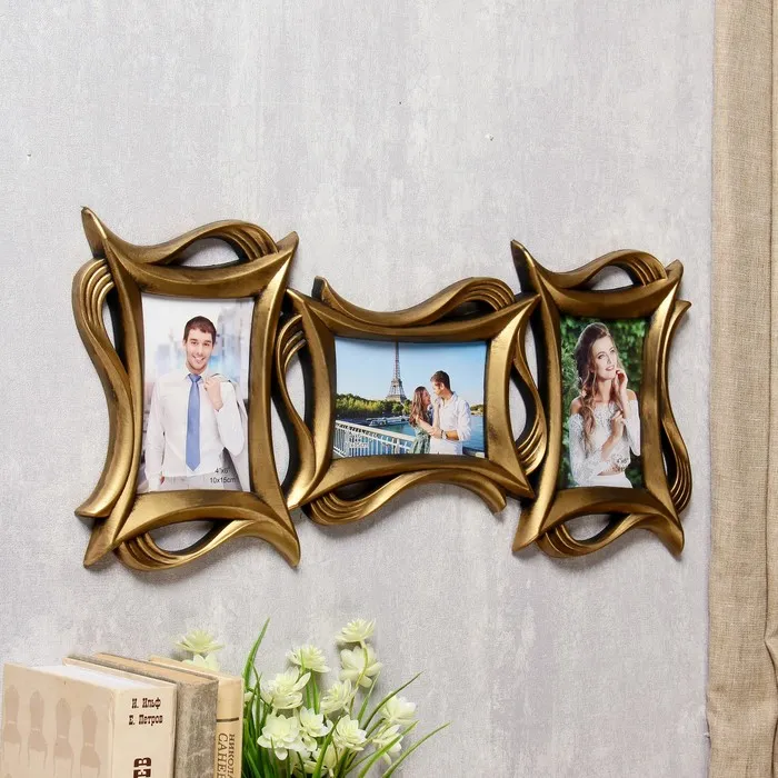 Фоторамка пластик на 3 фото 10х15 см "Плавные линии" т.золото 25х55,5 см — Характеристики