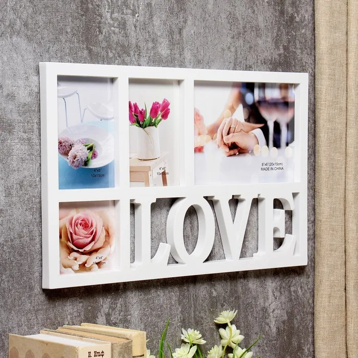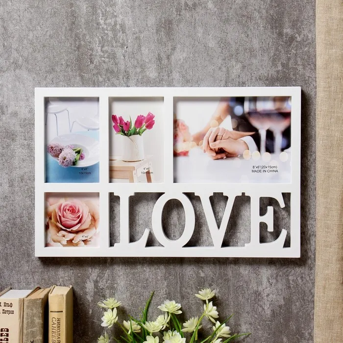 Фоторамка пластик на 4 фото 10х10, 10х15, 15х20 см "Любовь" белая 27,5х43 см — Характеристики