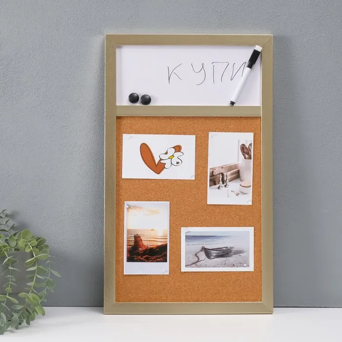 Фоторамка пластик на 4 фото 9х13 см магнитная доска, магниты, маркер, серебро 50х30х1,4 см 1042860 — Характеристики