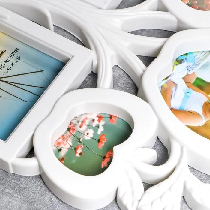 Фоторамка пластик на 5 фото 5,5х7, 9,5х11, 10х15, 10х10 см "Яблоня" белая 39,5х27,5х2 см — оригинальный подарок на День святого Валентина, годовщину, свадьбу или другое значимое для вас событие. Фоторамка, которая расскажет об искренних и теплых чувствах. И, возможно, она станет началом для создания вашего совместного генеалогического древа.
