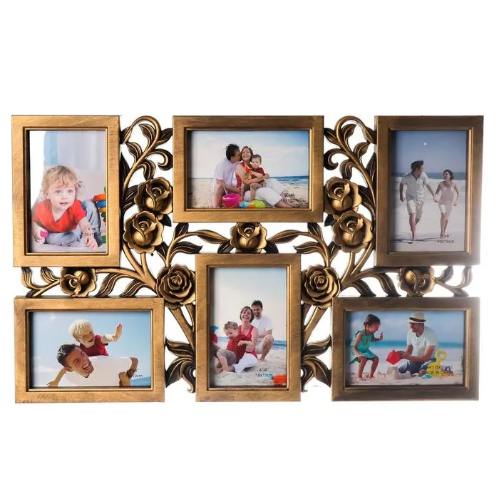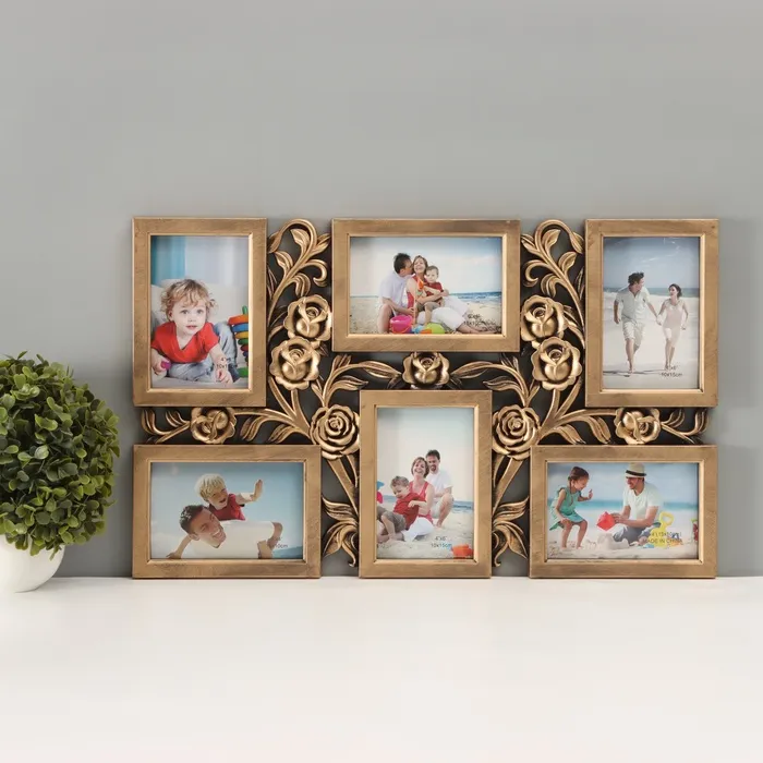 Фоторамка пластик на 6 фото 10х15 см "Куст роз" тёмное золото 35,5х56,5х2 см — Характеристики