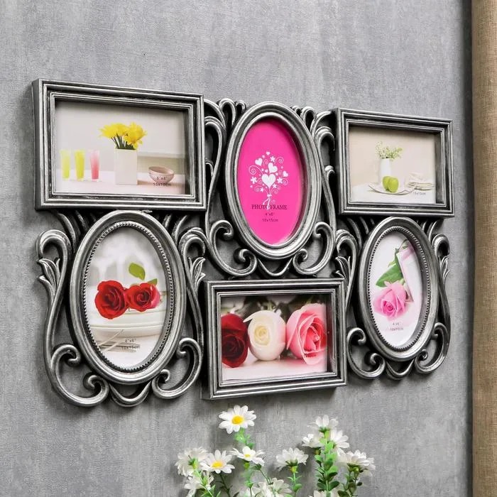 Фоторамка пластик на 6 фото 10х15 см "Стильная" серебро 50,5х31 см