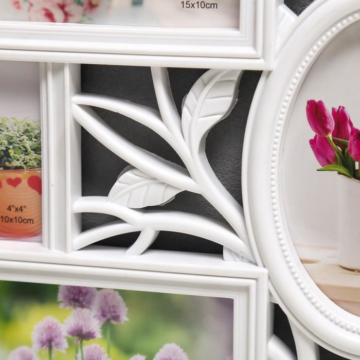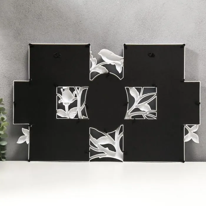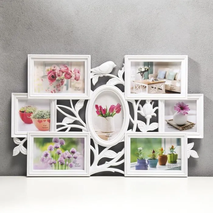 Фоторамка пластик на 7 фото 10х10, 10х15 см "Птица и шиповник" белый 33,5х52 см — Характеристики