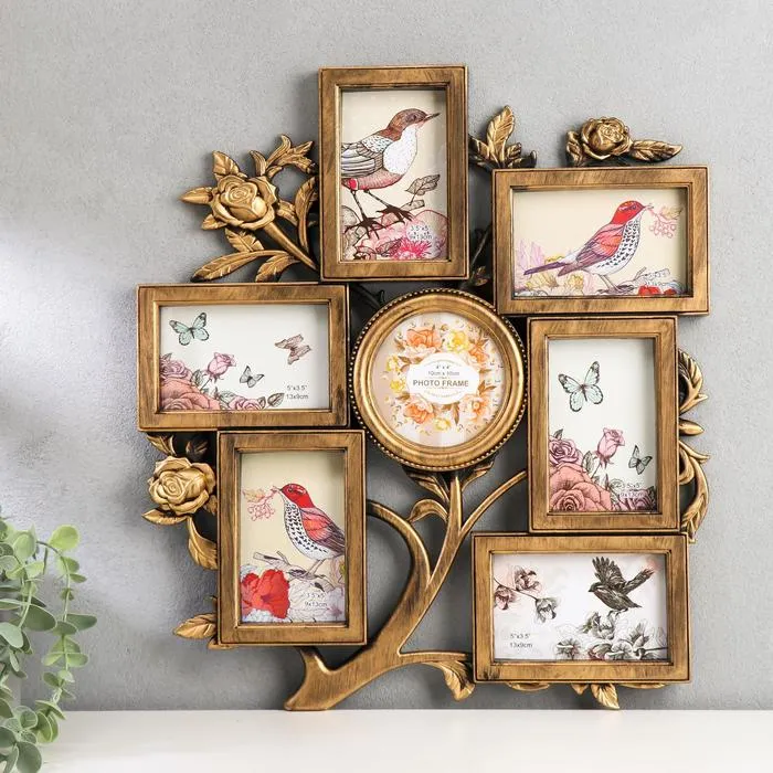 Фоторамка пластик на 7 фото 10х10, 9х13 см "Розовый сад" тёмное золото 43,5х39 см — Характеристики