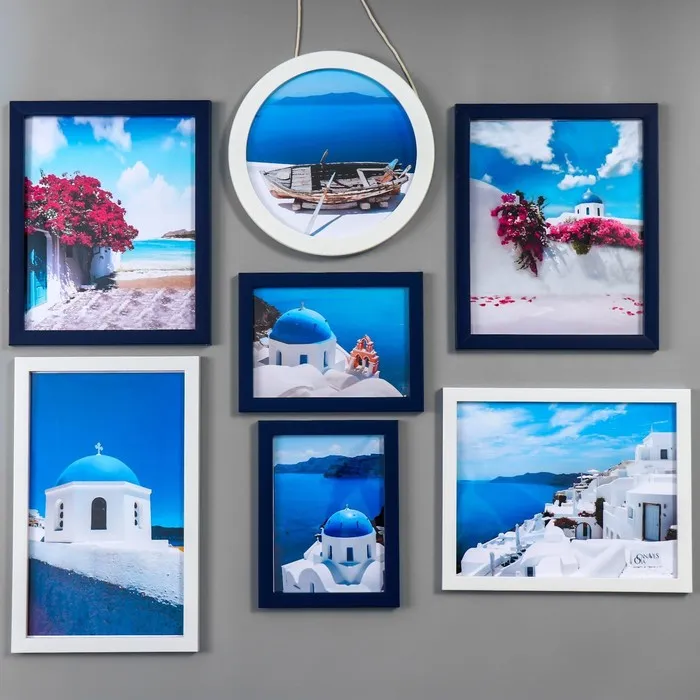 Фоторамка пластик на 7 фото+надпись+полочка "Family. Птицы" сине-белые набор 86х186 см — Характеристики