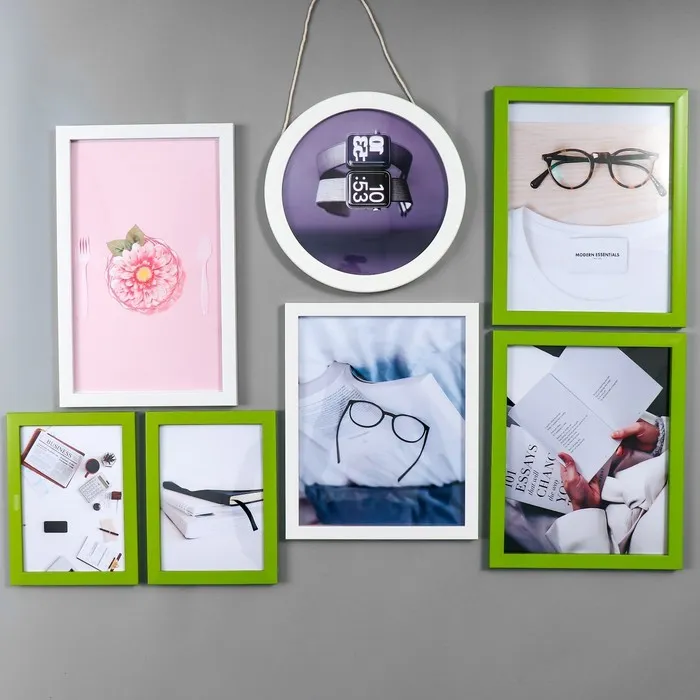Фоторамка пластик на 7 фото+надпись+полочка "Family. Птицы" зелёно-белые набор 86х186 см — Характеристики
