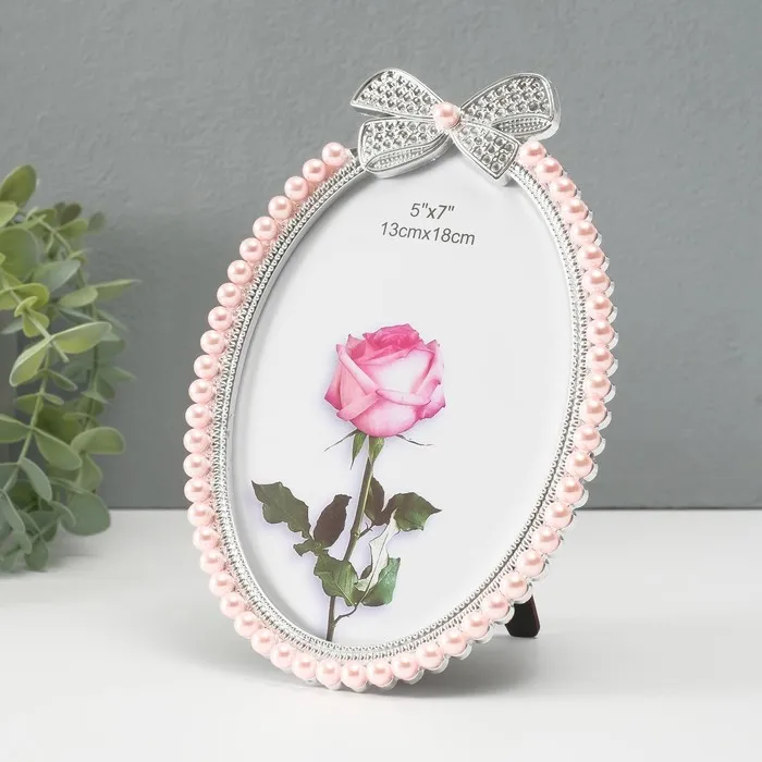 Фоторамка пластик под металл 12х17 см "Бант" жемчуг и стразы 20х14х1,5 см — Характеристики