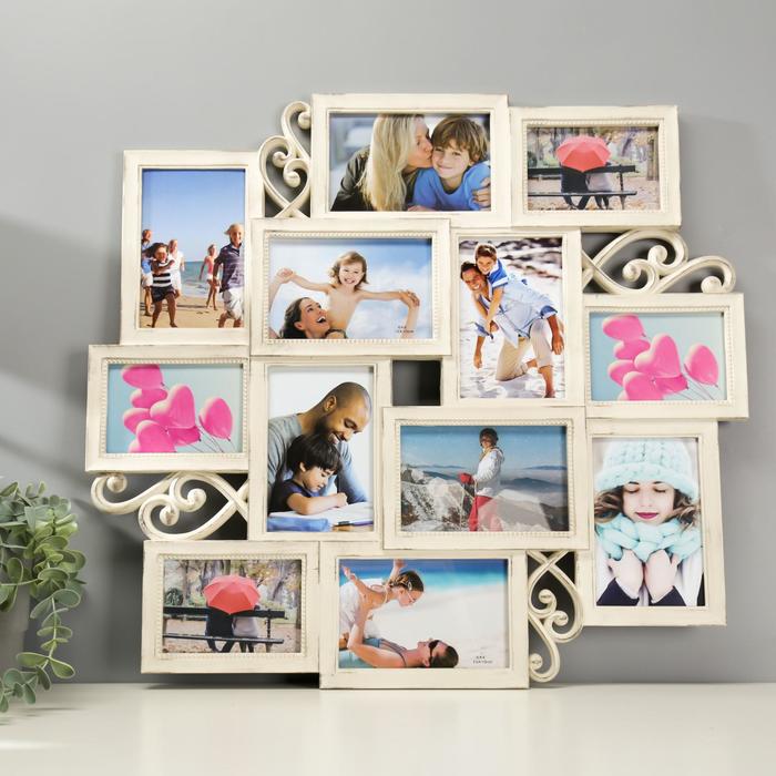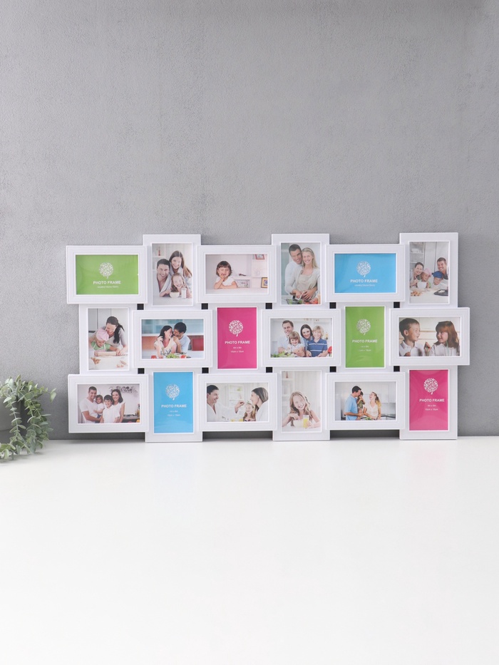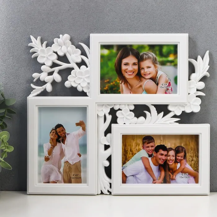 Фоторамка пластик, текстиль на 4 фото "Тропические листья" с прищепками, белый 60х30 см — Характеристики
