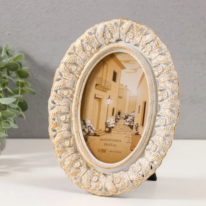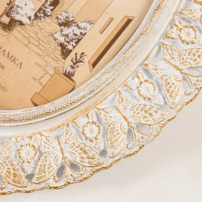 Фоторамка полистоун 10х15 см "Бабочки и нарциссы" белая с золотой патиной 18х2х22 см — Характеристики