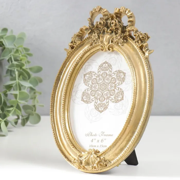 Фоторамка полистоун 10х15 см "Бант и медальон" состаренное золото 21х14 см — Характеристики