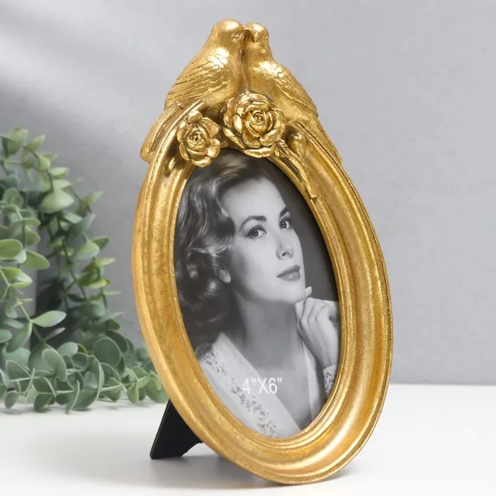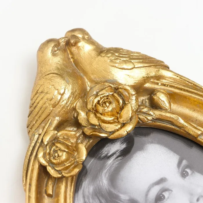 Фоторамка полистоун 10х15 см "Две птички в цветах" золотистая 14х22 см — Характеристики
