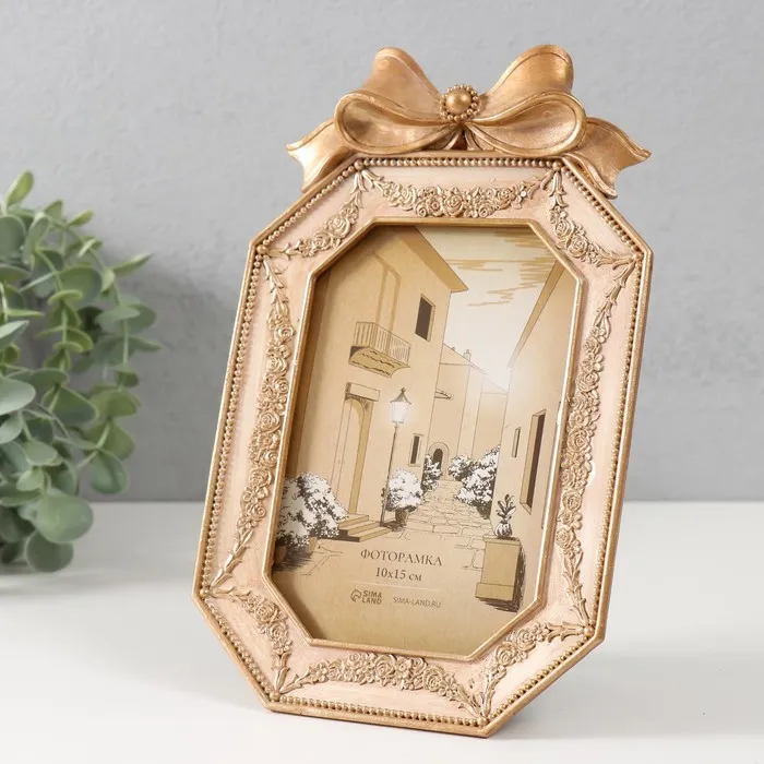 Фоторамка полистоун 10х15 см "Эсмеральда. Бант" песочное золото 14х2,5х22,5 см