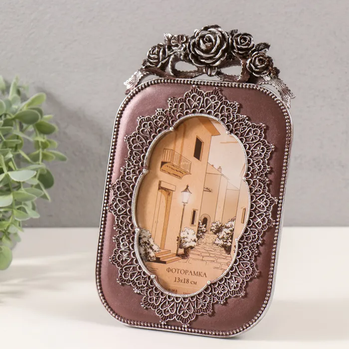 Фоторамка полистоун 10х15 см "Кружево и розы" серебро и шоколад 15х1,5х24 см — Характеристики