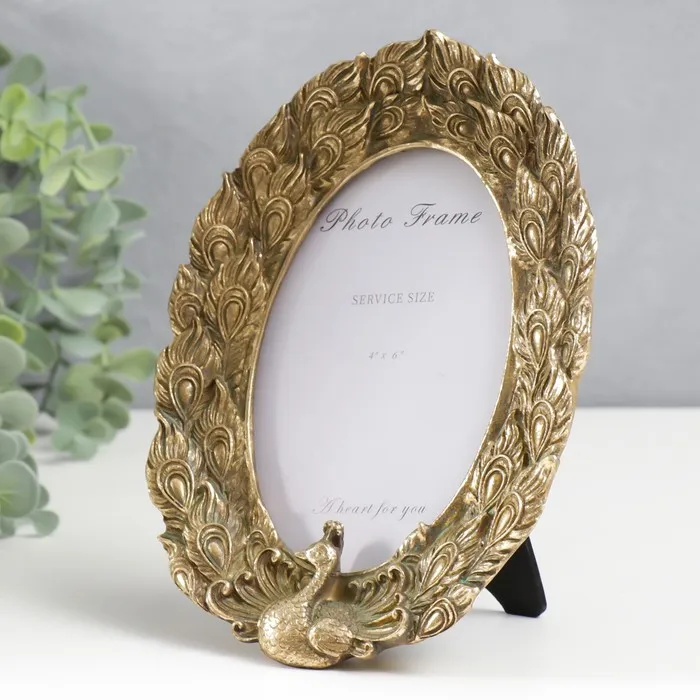 Фоторамка полистоун 10х15 см "Золотой павлин" с зелёной патиной 20,5х15,5 см — Характеристики