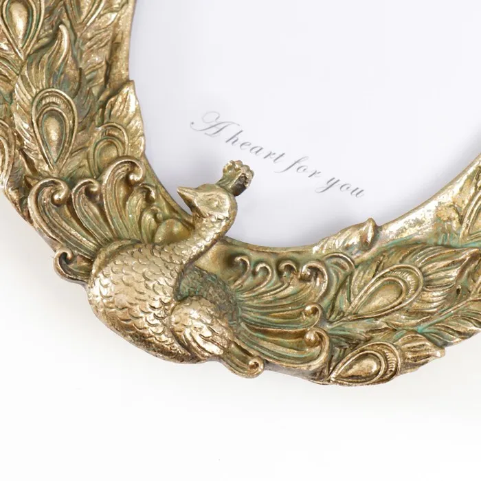 Фоторамка полистоун 10х15 см "Золотой павлин" с зелёной патиной 20,5х15,5 см