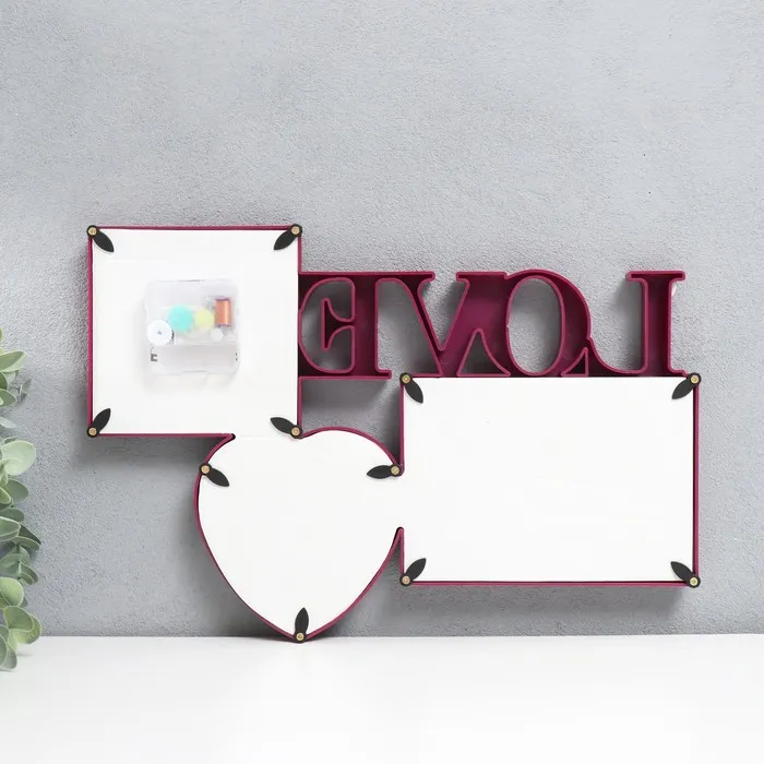Фоторамка с часами "Любовь" 2 фото, бордовый — Характеристики