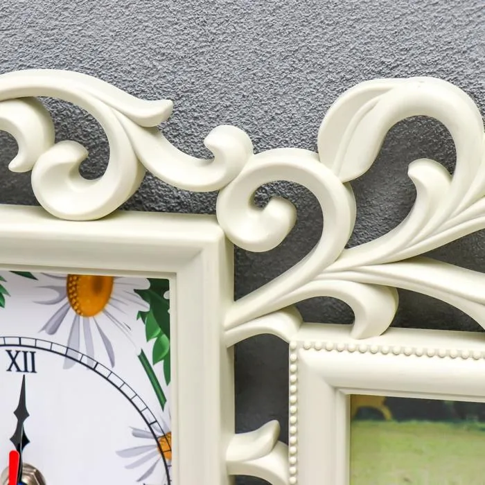 Фоторамка с часами "Счастье" 4 фото, слоновая кость — Характеристики