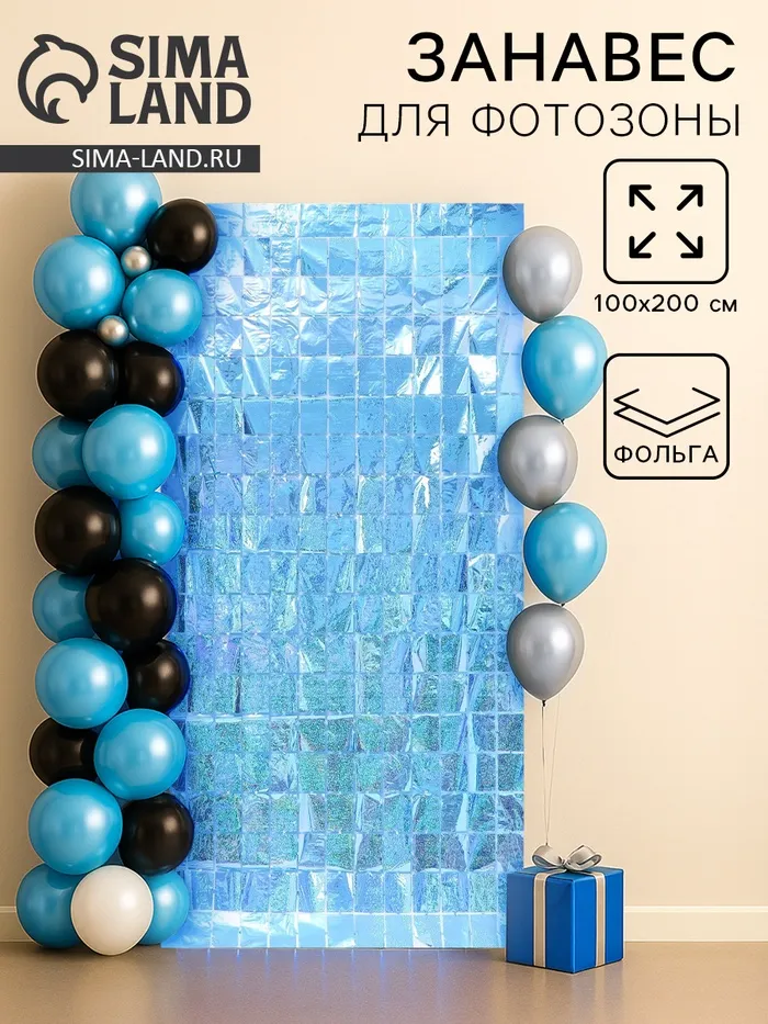 Фотозона - занавес, 100 × 200 см, голубой — Характеристики