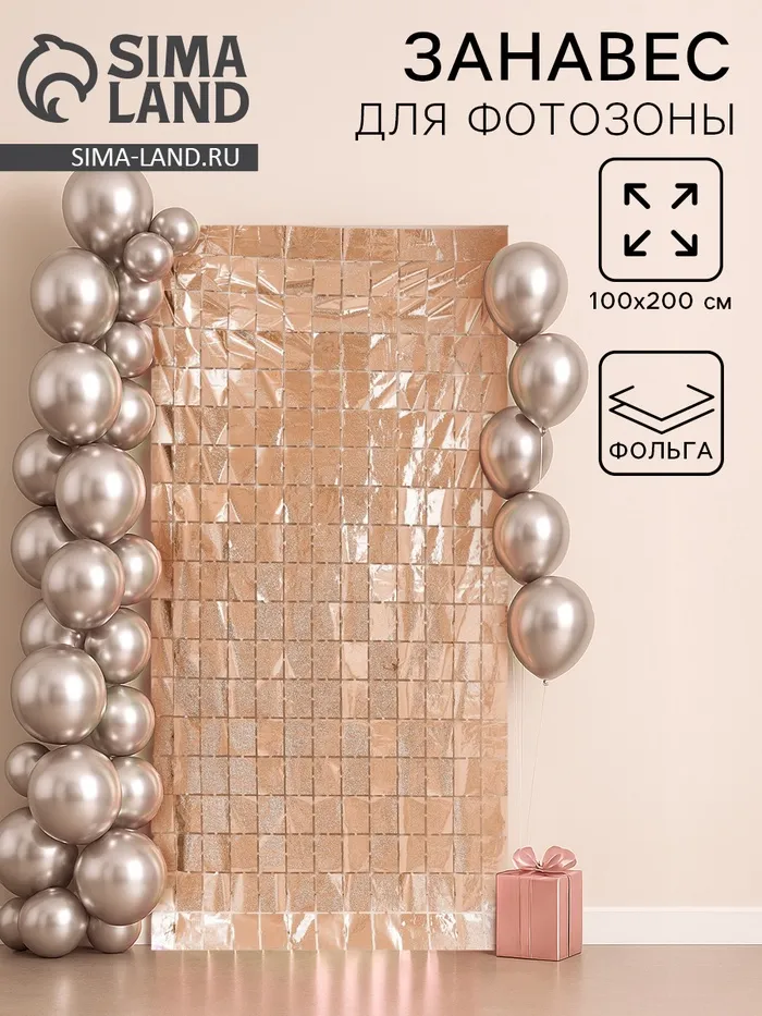 Фотозона - занавес, голография, 100 × 200 см., цвет розово-золотой — Характеристики
