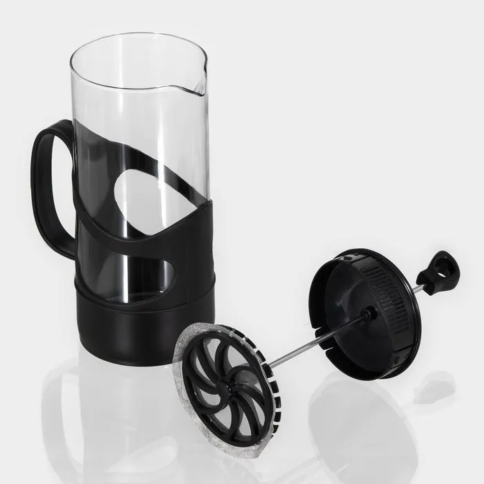 Стеклянный френч-пресс хорошо держит тепло, раскрывает вкус любимых напитков. Стальной поршень не вступает в реакцию с жидкостью, не наделяет ее металлическим привкусом.Принцип работы френч-пресса прост: