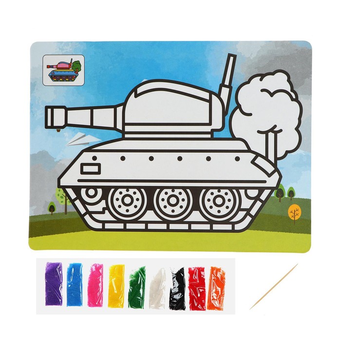 Специальные контуры не дадут разноцветным частичкам перемешаться и помогут с лёгкостью создать шедевр. Засыпайте картинку постепенно и не забывайте распределять мелкие песчинки по клеевому слою, чтобы добиться особой яркости изображения.