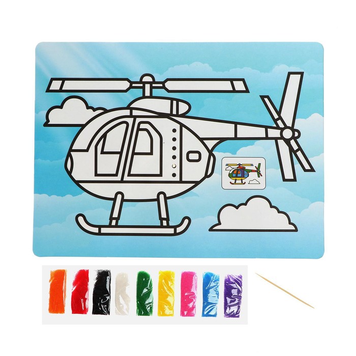 Фреска с цветным основанием «Вертолет» 9 цветов песка по 2 г