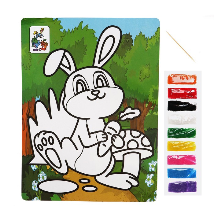 Фреска с цветным основанием «Зайчик с грибами» 9 цветов песка по 2 г — Характеристики