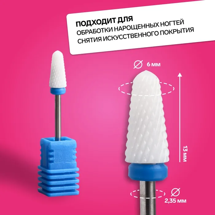 Фреза керамическая для маникюра «Конус», средняя нарезка, 6×13 мм, в пластиковом футляре, белая — Характеристики