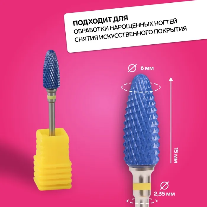 Фреза керамическая для маникюра «Кукуруза», мелкая нарезка, 6×15 мм, в пластиковом футляре, синяя — Характеристики