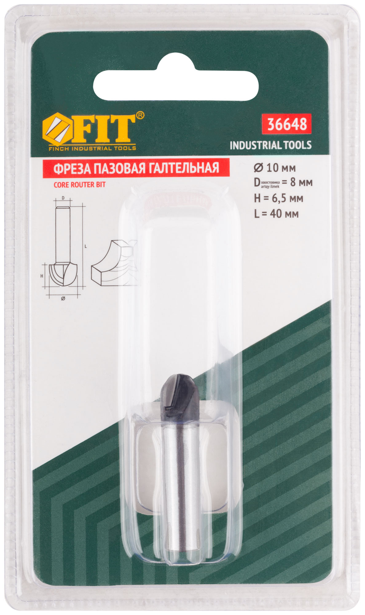 Фреза пазовая галтельная от FIT, размером 10х6,5x40 мм, идеально подходит для создания точных пазов в древесине. Используется в столярных и плотницких работах для соединения деталей или прокладки коммуникаций.