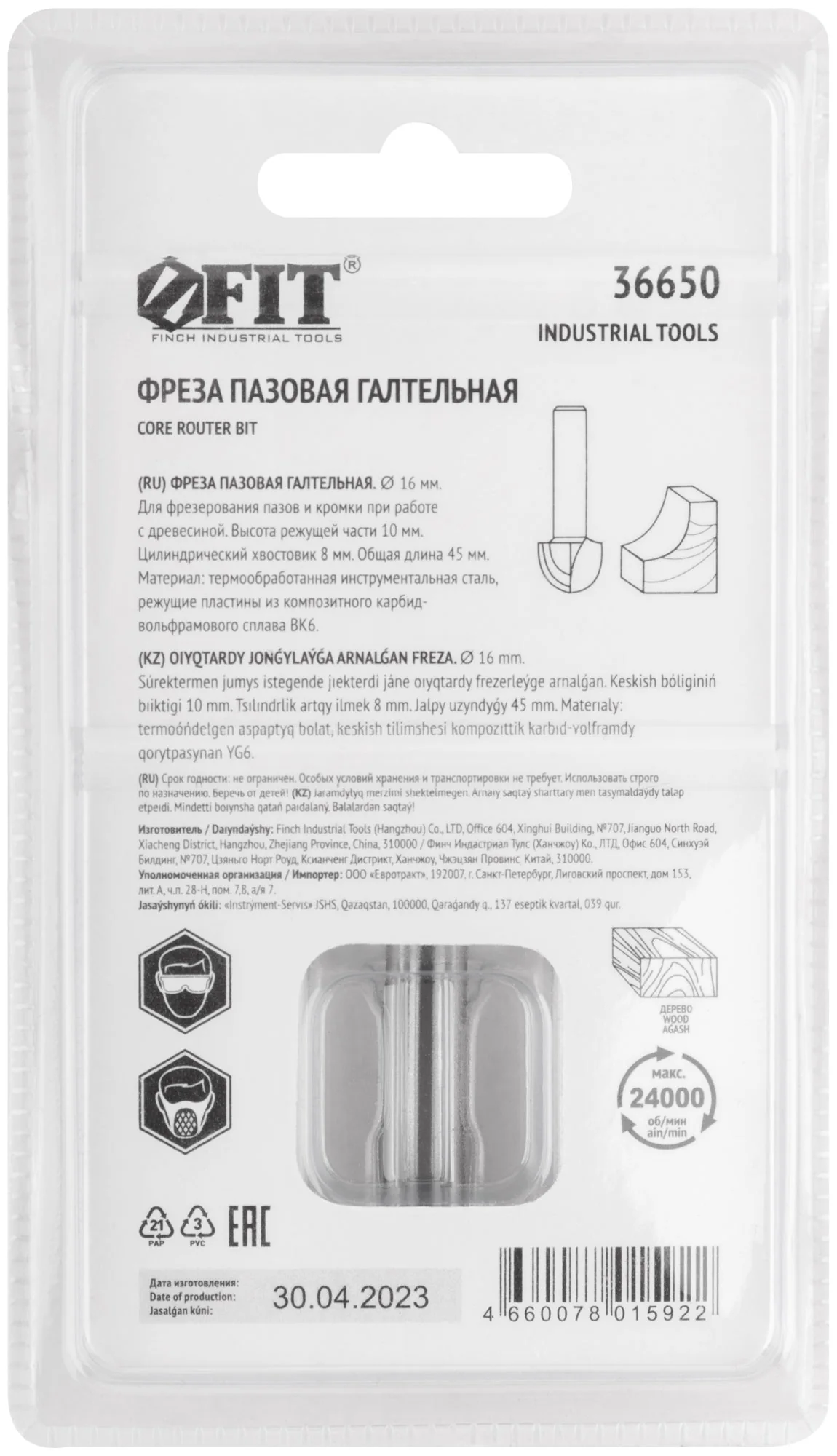 Выберите фрезу пазовую галтельную от FIT для надежной и качественной обработки дерева, арт. 36650.