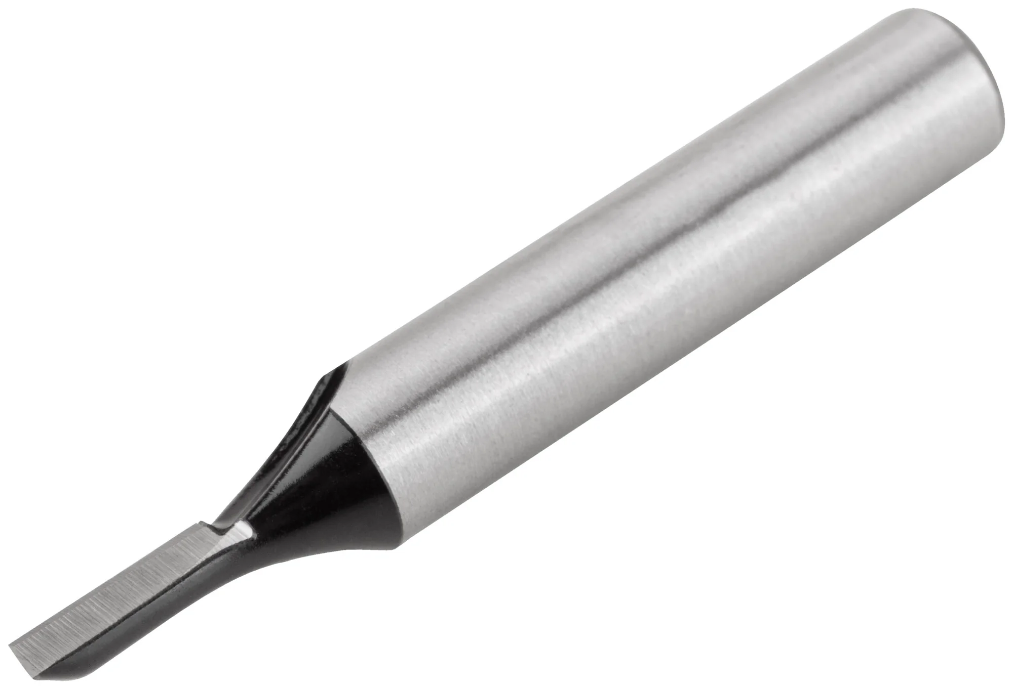Эта фреза оснащена цилиндрическим хвостовиком диаметром 8 мм, который обеспечивает надежную фиксацию в патроне. Лезвие выполнено из инструментальной стали с твердосплавной режущей вставкой, что значительно увеличивает срок службы и позволяет работать с различными материалами.