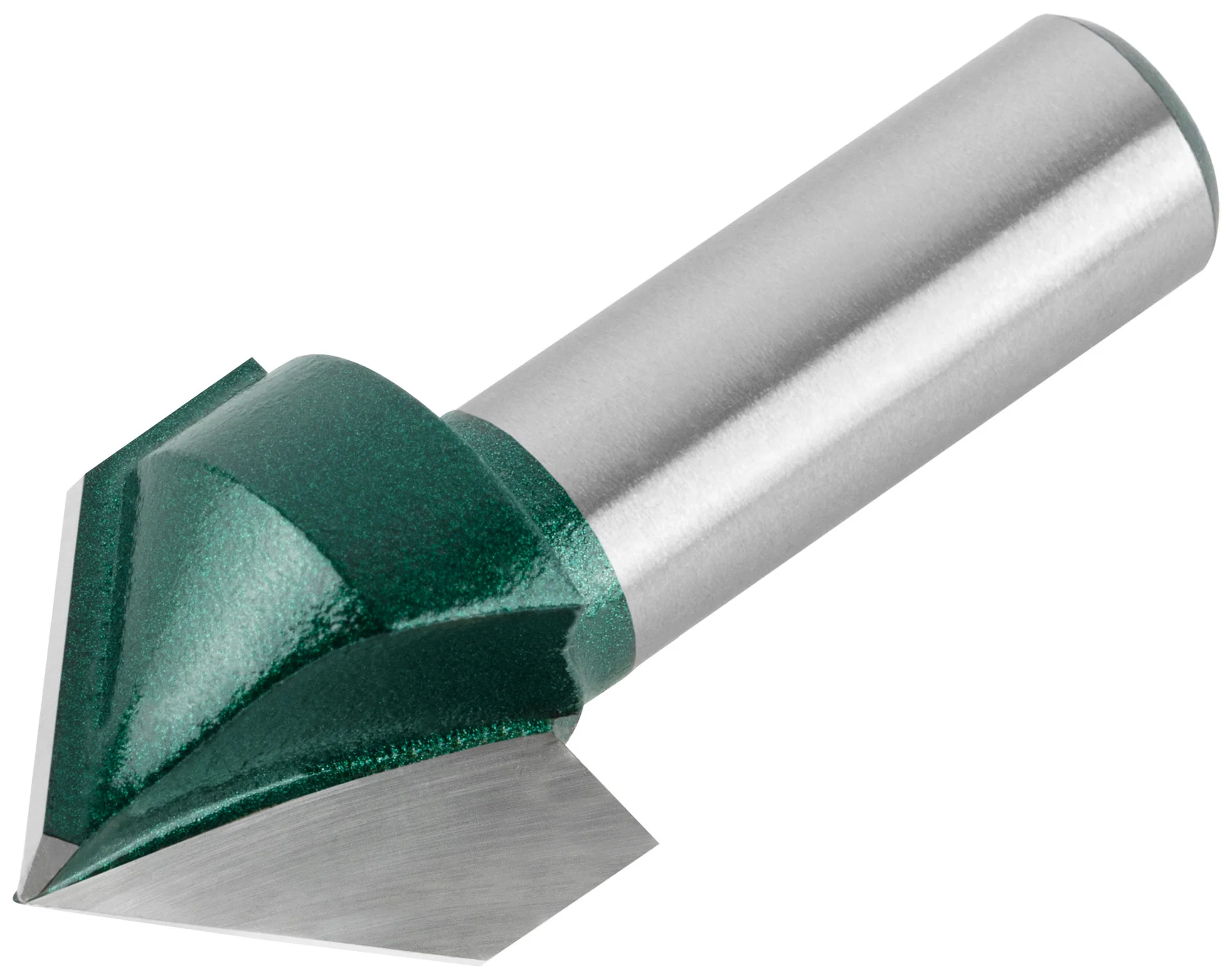 Среди преимуществ фрезы — угол при вершине 90°, который позволяет создавать четкие и глубокие пазы. Конструкция обеспечивает стабильность работы и снижает вибрации, что особенно важно при длительном использовании.