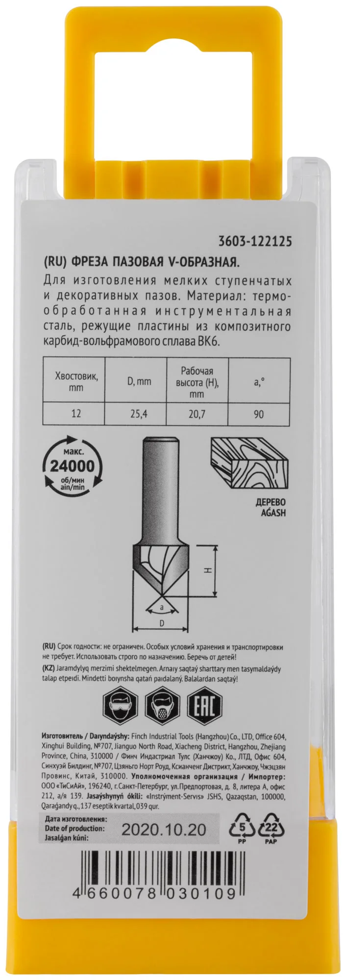 Фреза пазовая V-образная 25,4x20,7x55,7 мм для деревообработки