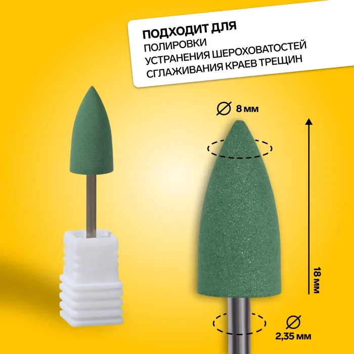 Фреза силиконовая для полировки, средняя, 8×18 мм, в пластиковом футляре, зелёная — Характеристики